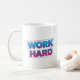 Bold and modern “Work Hard” motivational typography featuring a vibrant blue and pink gradient with a clean white outline.
