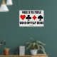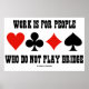 If you spend hours at the game of bridge -- and not hours working -- you'll enjoy this poster featuring tongue-in-cheek bridge / duplicate bridge attitude! Comes with the four card suits along with the bridge truism saying that is often heard at the bridge table: "Work Is For People Who Do Not Play Bridge".