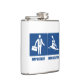 Well made flask, a little better than I had expected. Flask came in clear plastic box which gave it a nice presentation when I took it out of the zazzle packaging. Image is not printed on flask but on sticker. Don't know how this will hold up I haven't used it yet. This would make a Great gift! I plan to purchase more for friends! Cheers. I thought a little brighter than computer. Very crisp, writing wasn't