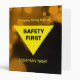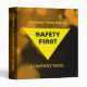 Work company safety binder in a one inch 3 ring binder style with yellow safety emblem and colorful business abstract background, including text areas you can customize for your company name and more. Works well as a company safety manual for new employees, training, or safety class.