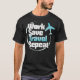 My 11 yo wore adult XL (5’7” 165#). The 8yo is small framed. She wore adult small and tied it in the back. Grandma wore adult large with long sleeve shirt underneath. Tall girl adult medium. Dark haired male adult large. Good quality dark Heather gray, Gildan brand shirt. -it was next up from basic choice and cost about $20 per shirt. Not too thick or thin. Washed and dried well, no major shrinkage. Not see-through. Can wear a bra under it fine. Screen print is just as shown and well done, front and back.