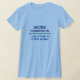 My overall review is that the T-shirt is nice, it fits true to size however the font is significantly smaller than advertised and you can't read it. The printing is unreadable and there is a strain to read it. It does not look like the advertised product. Maybe the shirt color is darker or a larger more visible font should have been used. Photos with and without flash and font is barely legible.