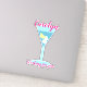 This fun contour cut sticker can be personalised with your name in pink, above a drawing of a blue cocktail glass of gin and tonic with ice and lemon, and the words "Working for gin".