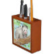 A watercolor painting of a good opossum mother, carrying her triplets, adorns this customizable desk organizer!