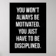 The poster captures a powerful message in a minimalist black and white design that complements any modern decor. "YOU WON'T ALWAYS BE MOTIVATED. YOU JUST HAVE TO BE DISCIPLINED," it reads, reminding us that true success in fitness—and in life—isn’t just about fleeting bursts of motivation; rather, it’s about the consistent discipline and effort we put forward. This statement serves as a daily motivational tool, framed within a simple but stylish black and white color palette that emphasizes the text, ensuring the focus remains on its inspiring message.