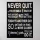 Heighten your motivation and decorate your space with meaning. Hang this "Never Quit" poster where you'll see it during those crucial moments when you need an extra push to overcome obstacles. It's more than just a poster—it's a daily dose of motivation, and a stylish one at that!
