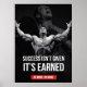 At the center of this poster is the powerful and concise quote, "Success isn't given. It's earned." These words resonate deeply in the world of fitness, entrepreneurship, and beyond, emphasizing the grit and determination required to reach personal and professional goals. The message serves as a daily encouragement to push through challenges and pursue excellence relentlessly.
