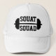 Let your gym buddies know what's what. This "Squat squad" workout hat has a barbell design in black on your choice of hat color. It'll keep your head cool and hair out of the way as you get fit. Get ones for your gym squad.