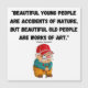 Works of Art; Funny quote by Eleanor Roosevelt about old people that should make them all feel much better about themselves: "Beautiful young people are accidents of nature, but beautiful old people are works of art." Along with the quote is a funny image of an elderly gentlemen with his cane.