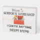 Great gift for the Mr. or Ms. Fix-it in your life. They will appreciate the humor and the confidence in their ability to repair anything...except stupid! Item is made from wood, with a distressed look. Buyer is encouraged to edit text to change the name.