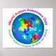 April 2nd is World Autism Awareness Day. Unique Autism puzzles on a globe and “Support Autistic Children All Over the World.”