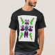 My 11 yo wore adult XL (5’7” 165#). The 8yo is small framed. She wore adult small and tied it in the back. Grandma wore adult large with long sleeve shirt underneath. Tall girl adult medium. Dark haired male adult large. Good quality dark Heather gray, Gildan brand shirt. -it was next up from basic choice and cost about $20 per shirt. Not too thick or thin. Washed and dried well, no major shrinkage. Not see-through. Can wear a bra under it fine. Screen print is just as shown and well done, front and back.