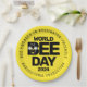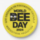 Make May 20th (World Bee Day) a memorable event with these paper plates, which feature the 2024 theme "Bee Engaged in Pollinator-Friendly Agricultural Production" encircling the words World Bee Day 2024 with a stylized honeybee hovering over the letter B.