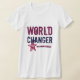 My overall review is that the T-shirt is nice, it fits true to size however the font is significantly smaller than advertised and you can't read it. The printing is unreadable and there is a strain to read it. It does not look like the advertised product. Maybe the shirt color is darker or a larger more visible font should have been used. Photos with and without flash and font is barely legible.