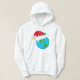 A globe of the world with a christmas hat on it. This design looks really effective on this Mens Hoodie