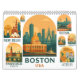 World Cities 2026 Travel Calendar | Boston, New Delhi, Stockholm, Seoul, London, Venice, Athens & More | Modern Retro City Art