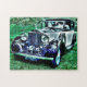 A fun and distinctive puzzle of the world class Roll Royce. The black and silver classic car is in high definition and set against a rich green lawn. Makes a great gift, too.