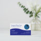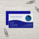 World globe business cards with image of a world map globe and blue design element with professional text layout you can easily customize. Designed for a businesses involved in travel, ecommerce, home business, entrepreneurship finance, or world commerce.