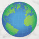 A graphical view of the Earth over the Atlantic Ocean as a blue and green map showing the major continents of the Americas, Europe and Africa. You may customize by changing the background color or adding your own text.