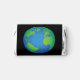 A graphical view of the Earth over the Atlantic Ocean as a blue and green map showing the major continents of the Americas, Europe and Africa.