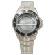 Has heft and feel of expensive stainless steel quartz watches. Good band with safety catch. I removed links, which is easy because engraved arrows show direction to push the linking pins. As always by this seller, the image (a railroad logo) is a perfect reproduction of my emailed image, and is precisely spaced and aligned.