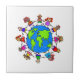 Cute cartoon whimsical illustration of a group of happy and diverse little stick figure boys and girls holding hands around the world. Easily customize and choose your own background colour or add text. Image available on various gifts and products.