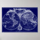 This is a world map with a blue and white color scheme. The map itself was originally produced in 1775.