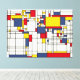 Abstract Map of the World Canvas Art Print inspired by dutch painter Piet Mondrian. Mondrian was an important contributor to the De Stijl art movement and group, which was founded by Theo van Doesburg. He evolved a non-representational form which he termed Neo-Plasticism. This consisted of white ground, upon which was painted a grid of vertical and horizontal black lines and the three primary colors
