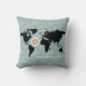 World Map, anchors and compass-rose Throw Pillow