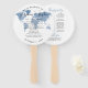 Blue and white World Map Wedding Program Fan for a travel theme or destination wedding. Customizing is super easy, you can change fonts, text color, background color, and design by clicking CUSTOMIZE FURTHER.