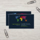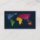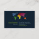 Customizable business card template with colorful continents world map. Suitable for various fields - telecommunications, internet, travel & tourism, e-commerce, environment and other global industries.