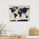 Distressed grunge style map of the world in Navy and Beige/Cream.