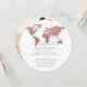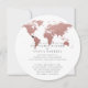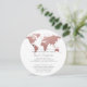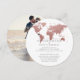 Invitation for an at-home reception after a destination wedding or elopement with an elegant faux rose gold pink foil world map and classic chic fonts with a wedding photo on the back. It's common to have a full reception or celebration after a small wedding abroad or impromptu beach wedding when your family wants to celebrate with you just the same as if you had gotten married in your home town and it's a chance to have fun with the invitations or have a travel theme reception if the couple frequently travel or met while traveling. Our globe invitations are die cut into a round shape that fit into square envelopes and really make a statement in the mail. Add one of our travel theme rsvp cards to complete the set, check out the Paper Grape Destinations Zazzle Designer Store.