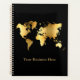 A graphic world map design by artist/designer Charmaine Paulson on a planner. The text used here is Garamond Bold and the color D0AA6C.