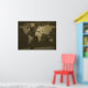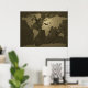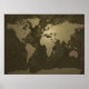 Map of the world in gold tones with detailed ridged ocean floor and simplified polished land, giving an effect of a piece of cast metalwork.