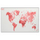 World map in watercolor Red Fabric
