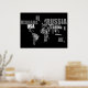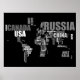 World Map made up of the names of each country. Virtually all countries are shown except for some of the very smaller ones.