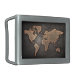 World map leather geographical brown belt buckle
