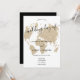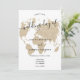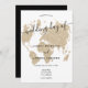 World map light gold glitter chic script wedding invitation