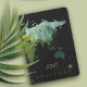 The map of the world on black passport holder, personalized with the name and initials of the stylish traveler
