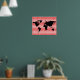 world map on red chevron pattern poster