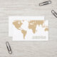 A business card for international related professionals... with the image of an oversized light brown map of the world printed on white background... with name printed in classic serif font style.