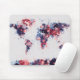 Map of the world made from a mixture of colbalt blue and carmine red paint splashes.