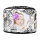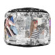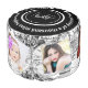 World Map Photo Collage Black and White Footstool is the perfect addition to any home decor. This pouf is a great way to add an elegant touch of sophistication while still providing comfort. The black, white, and grey color scheme makes it easy to match with almost any existing furniture or design style in your home. It also features a message, name, and monogram on the top and a photo collage on the lateral side where you can add up to five of your favorite photos for added personalization that will make this piece truly unique in your space!