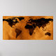 Map of the world in rich, earthy brown tones in grunge vintage style.