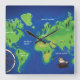 World Map Square Wall Clock