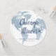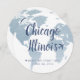 Travel Theme Table Name Cards with a Dusty Blue World Map and Custom Location Text lets you create your own unique table "numbers" that are named after your favorite city, state, or country, or important destinations in your life. The airplane icon graphic can be moved or removed, and background colors and fonts can be changed using the advance template editor.