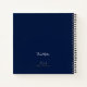 A dark blue notebook with a simple design of a white map personalized with your own name and monogram.