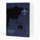 A stylish and modern blue mini-binder with a graphic image of the map of the world and an airplane, personalized with your name and initials and with your special travel subject