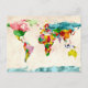 Map of the world with each country shown in a different colour. The countries are shown overlaid on a watercolor painted base.